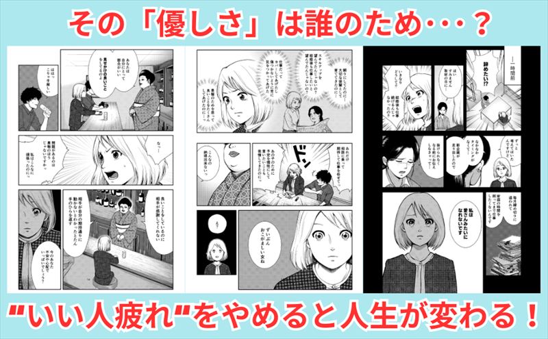 アマゾンの「内容紹介」には、「◆あなたも、人間関係でこんなふうに感じたことはありませんか?」として、「いつも自分ばかり損な役回りだ」「いい人を演じるのはもう疲れた」「気づかいが裏目に出る」とあります。もし1つでも当てはまり、仕事でも人間関係でも悪循環を繰り返しているとしたら、「いい人」に関して誤解をしている可能性が高いといいます。いい人がうまくいかない最大の理由は、言葉や行動の形さえ「いい人っぽく」できていればそれで良いと思い込んでいるから。そして、たいていの人は、なぜいいことをするのかという自分の心の働きに無頓着。いい人を装って、演じていては、ただ疲れるばかり。本書で伝えるのは、ちょっとした、でも多くの人が気づいていない心の働きに関する3つの具体的なメソッド。基本にして、一生役立つ生き方の極意。「いい人疲れ」を卒業して「とことん優しい人」をめざすと、人間関係も、人生も、全部がよりよい方向に動き出すと訴えます。