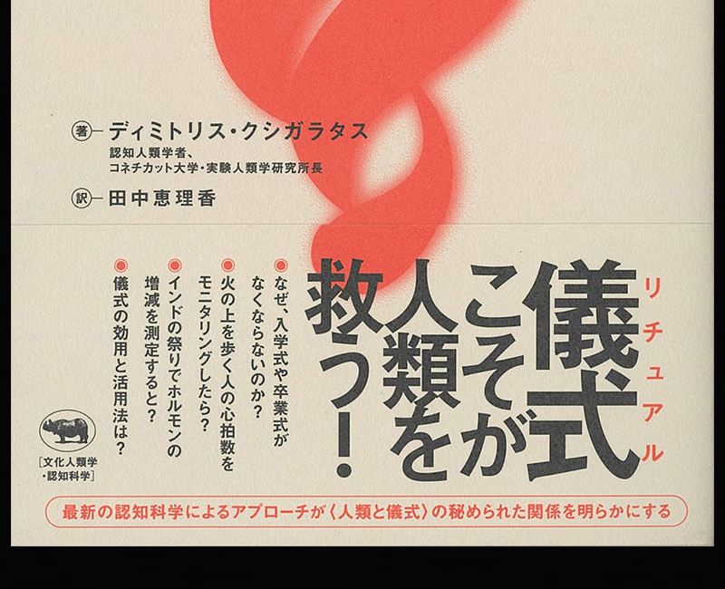 本書の帯には「儀式(リチュアル)こそが人類を救う!」と大書され、「●なぜ、入学式や卒業式がなくならないのか?」「●火の上を歩く人の心拍数をモニタリングしたら?」「●インドの祭りでホルモンの増減を測定すると?」「●儀式の効用と活用法は?」「最新の認知科学によるアプローチが〈人類と儀式〉の秘められた関係を明らかにする」と書かれています。