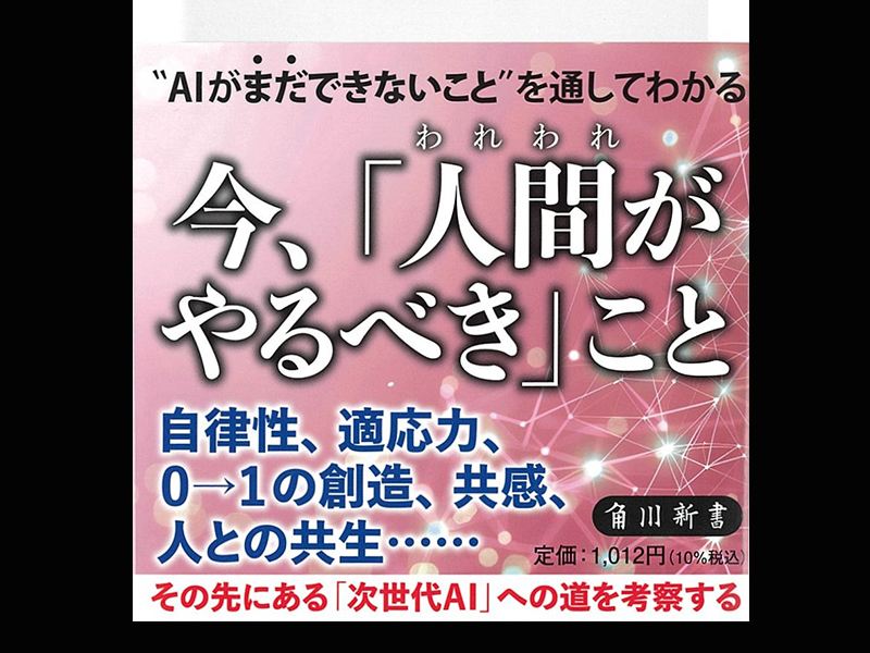 本書の帯には、「“AIがまだできないこと”を通してわかる」「今、『人間(われわれ)がやるべき』こと」「自律性、適応力、0→1の創造、共感、人との共生……」「その先にある『次世代AI』への道を考察する」と書かれています。