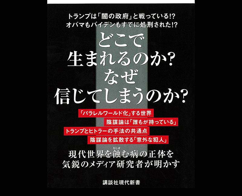 本書の帯には「トランプは『闇の政府』と戦っている!?」「オバマもバイデンもすでに処刑された!?」「どこで生まれるのか? なぜ信じてしまうのか?」「『パラレルワールド化』する世界」「陰謀論は『誰もが持っている』」「トランプとヒトラーの手法の共通点」「陰謀論を拡散する『意外な犯人』」「現代世界を蝕む病の正体を、気鋭のメディア研究者が明かす!」