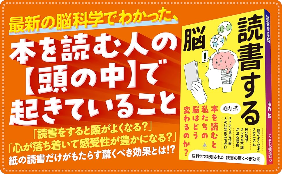 帯には「本を読むと私たちの脳はどう変わるのか?」と大書され、「『頭がよくなる』メカニズム」「数分間でメンタル不調が治る理由」「スマホで見る情報との決定的なちがい」「脳科学で証明された読書の驚くべき効能」とあります。