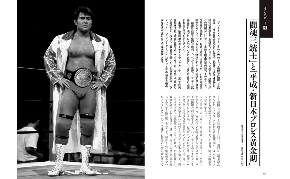 インタビュー6「追悼――“獄門鬼”マサ斎藤との思い出」では、2018年7月14日にパーキンソン病で亡くなったマサ斎藤について、武藤が「マサさんって、そんなにプロレスを語る人じゃなかったよ。理屈っぽい人じゃなかったしね。マサさんのプロレスは単純じゃん。序盤はレスリングで入って、悪いことをして、バックドロップとかをやって。だから、試合の中のストーリーで魅せるレスラーじゃなかったかもしれないな。見かけと一発の技・・・そういうもので魅せるレスラーだったかもしれない。意外にビジュアル中心じゃん、マサさんのセールスポイントって。マサさんは見るからにプロレスラー・・・ディス・イズ・プロレスラーという感じの人だもんな。今は、ここまでキャラが立った人はいないもんね。というか、こういう人材を必要としないプロレス界になっちゃった。今と昔じゃ名前こそ同じプロレスだけど、全然違うからな。あんなゲテモノはいないよ、今の時代に」と回想しています。